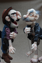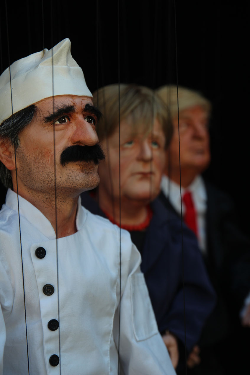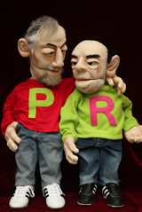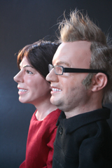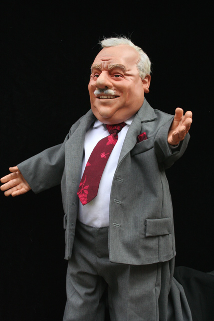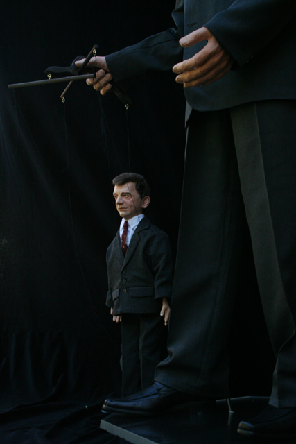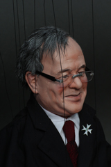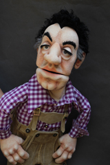 Polit-Puppets for 'Rabenhoftheater' in Vienna, based on drafts by Gerhard Haderer. 'Bei Faymann', september 2009, all rights reserved by Gerhard Haderer.